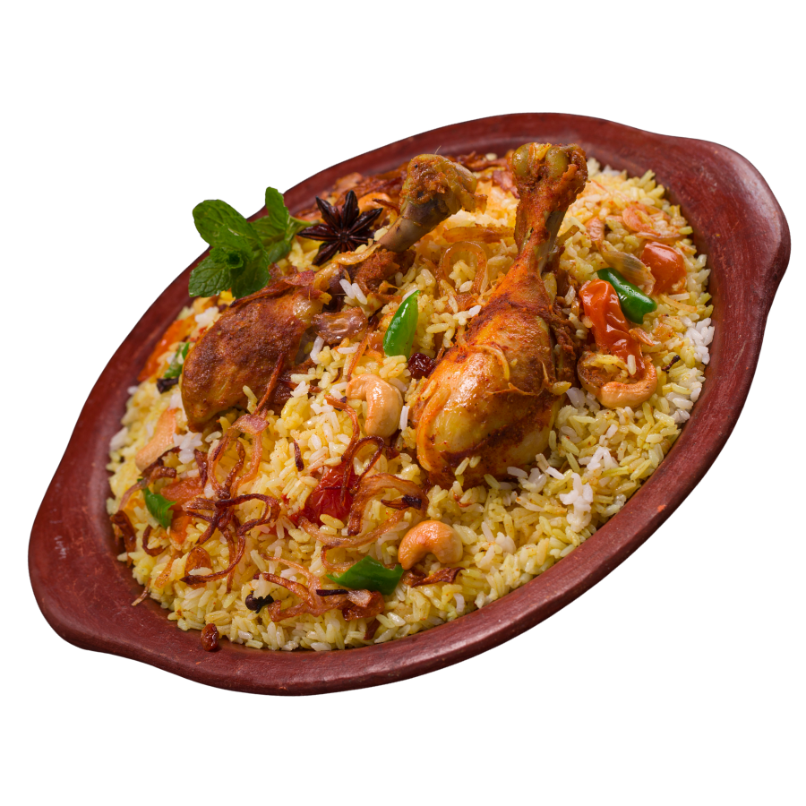 A rich mix of coastal and Mughlai-inspired dishes with bold spices and aromas. Includes: Malabar Chicken Biryani, Kozhi Varattiyathu (Dry Spicy Chicken), Fish Pollichathu, Parotta & Appam, Elaneer Pudding,